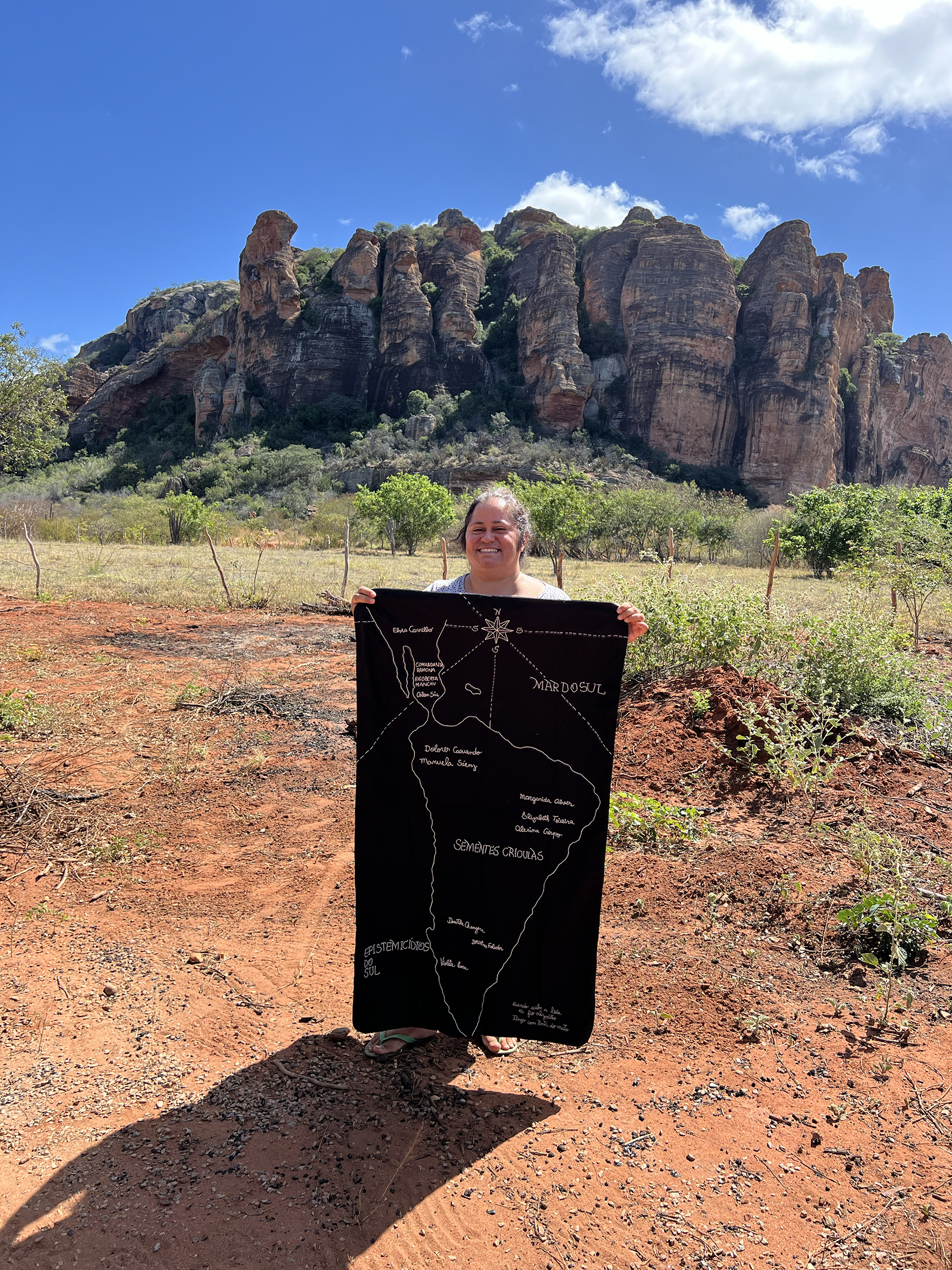 Tininha Llanos (b. 1978, Cristina – MG, BR) lives and works in Serra da Capivara, Piauí, Brazil. She is a visual artist with a degree from UFBA, a curator, and a cultural manager. She also works as a tour guide (IFPI) and a visitor guide accredited by ICMBio in the Serra da Capivara National Park.